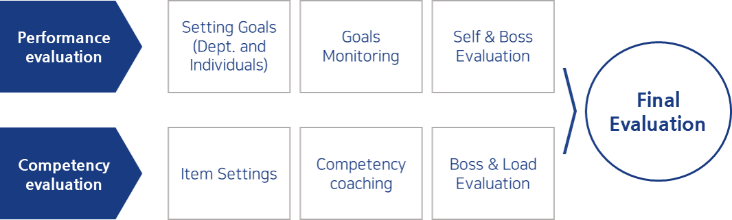 First interview by department head, followed by second interview with executives